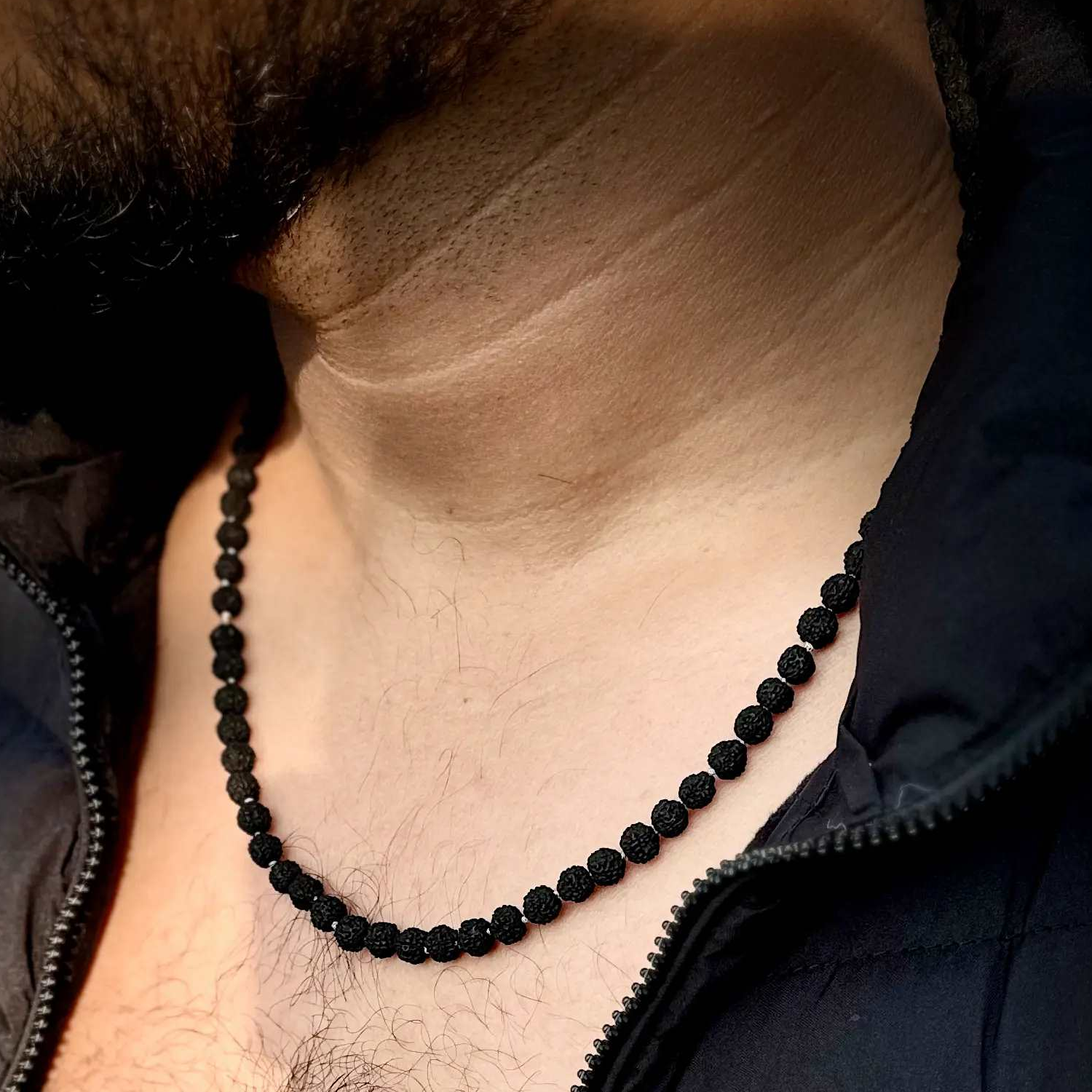 Wear this sacred mala as an emblem of spiritual unity, connecting you to the divine energies of the Paanch Mukhi Rudraksha. The black beads add an element of mystique and sophistication to this spiritual accessory, making it a perfect accompaniment for every member of your family on their unique spiritual path.